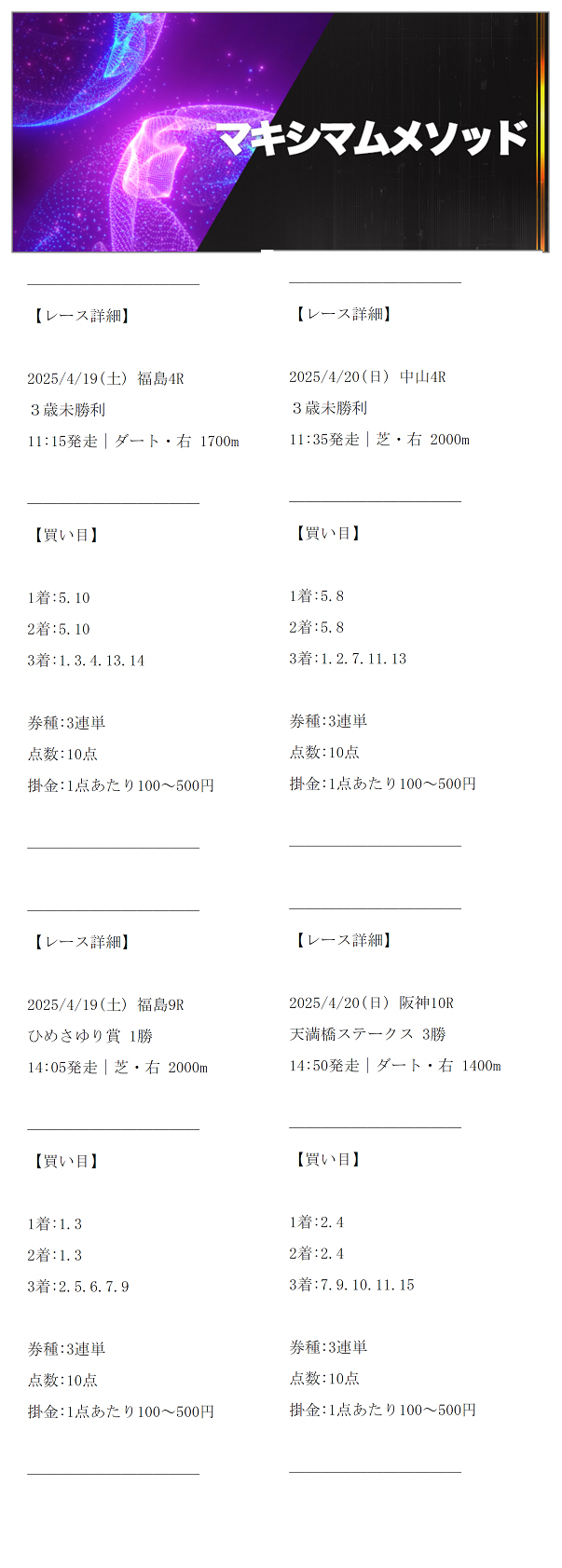 無料予想この日の的中で3週連続馬単的中してませんか?
