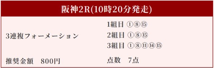 阪神9Rは三連単(18点)で的中