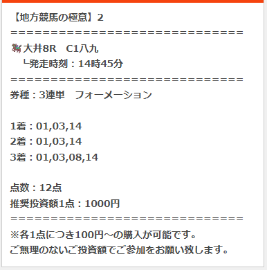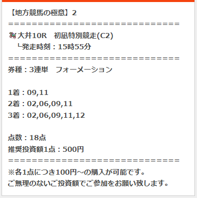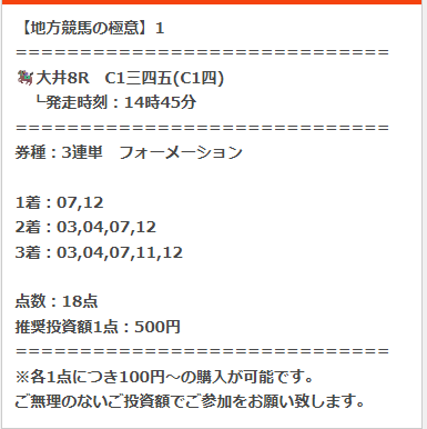 2月4日(水)の地方競馬の極意購入しました!